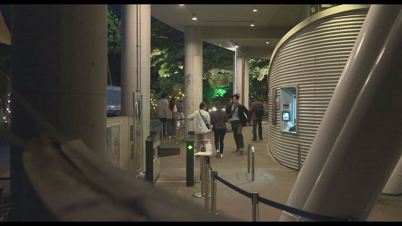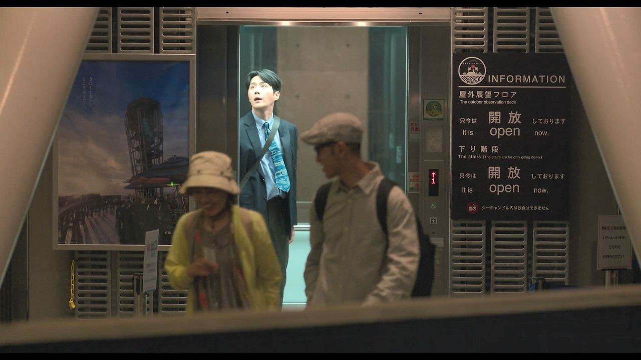 엘리베이터를 타는 지상층 장면: 에노시마 씨 캔들