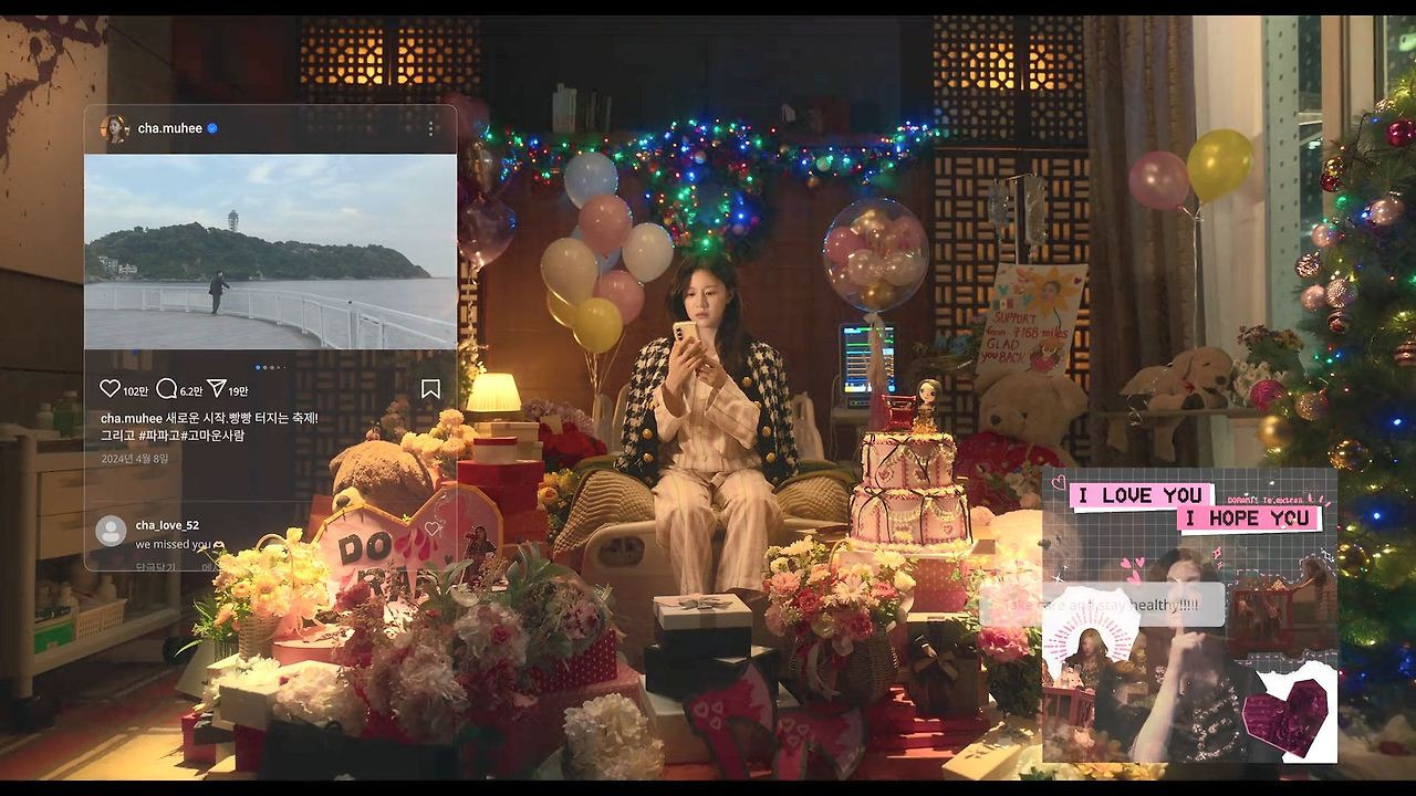 고급 호텔 병실의 조용한 공기감은 인물의 취약함을 부각합니다. 차무희가 조명 아래 있는 사람이라는 설정과, 결국은 혼자 남는 인간이라는 설정이 동시에 들어올 수 있어, 관객은 이 공간에서 ‘스타의 화려함’보다 ‘사람의 외로움’을 먼저 읽게 됩니다.