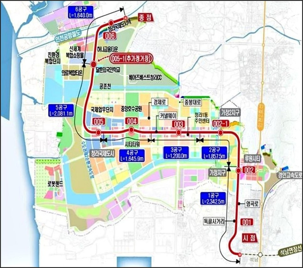 - 1단계: 석남역 기준 1~5공구 (정거장 001~005) 구간 — 2027년 하반기 개통 목표.